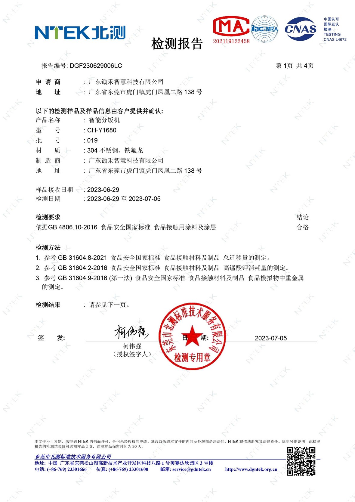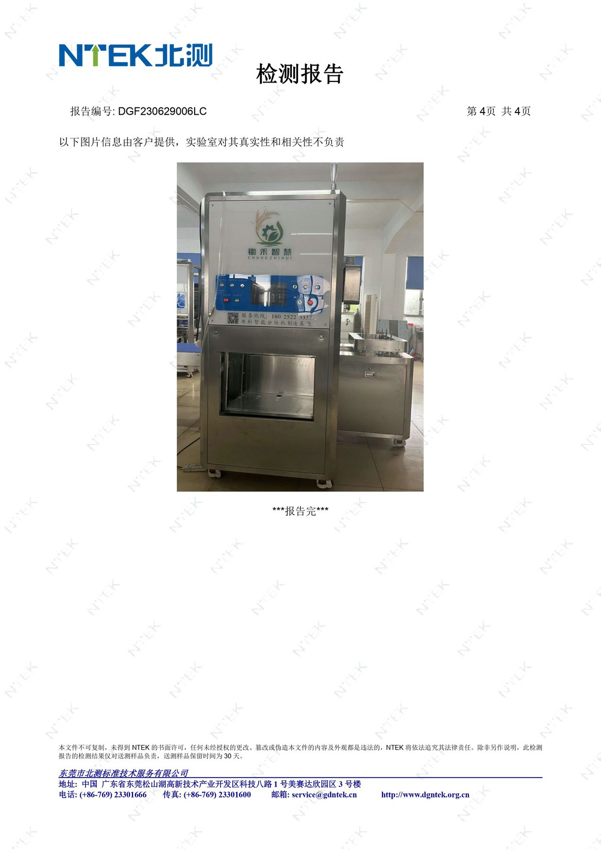 首页 >> 检测报告 >>安全报告 >> 锄禾智慧分饭机品质安全检测报告